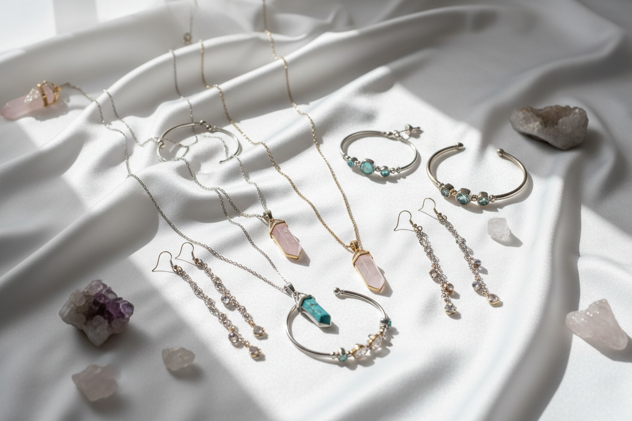 Vi erbjuder noggrant utvalda smycken och kristaller som förenar elegant design med jordens healing-energi. Varje mineral bär på sin egen unika historia och kraft, skapat för att påminna dig om din inre styrka och skönhet.
